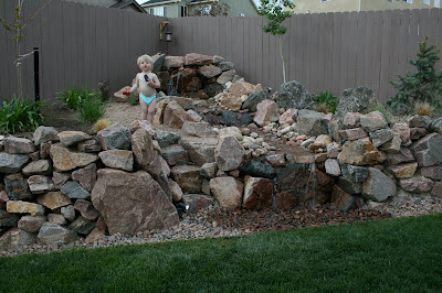 I still need to take a complete picture of our backyard as of now, but you get the idea right? I am really loving the waterfall....its definetely my favorite part of the yard and also the kids' favorite...what fun!!